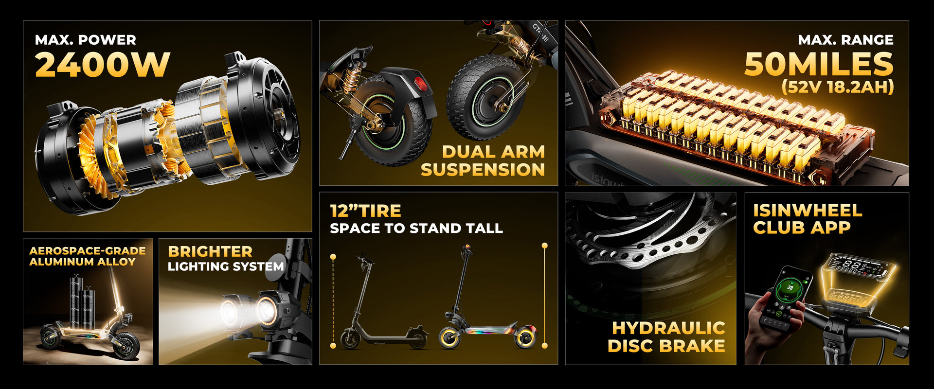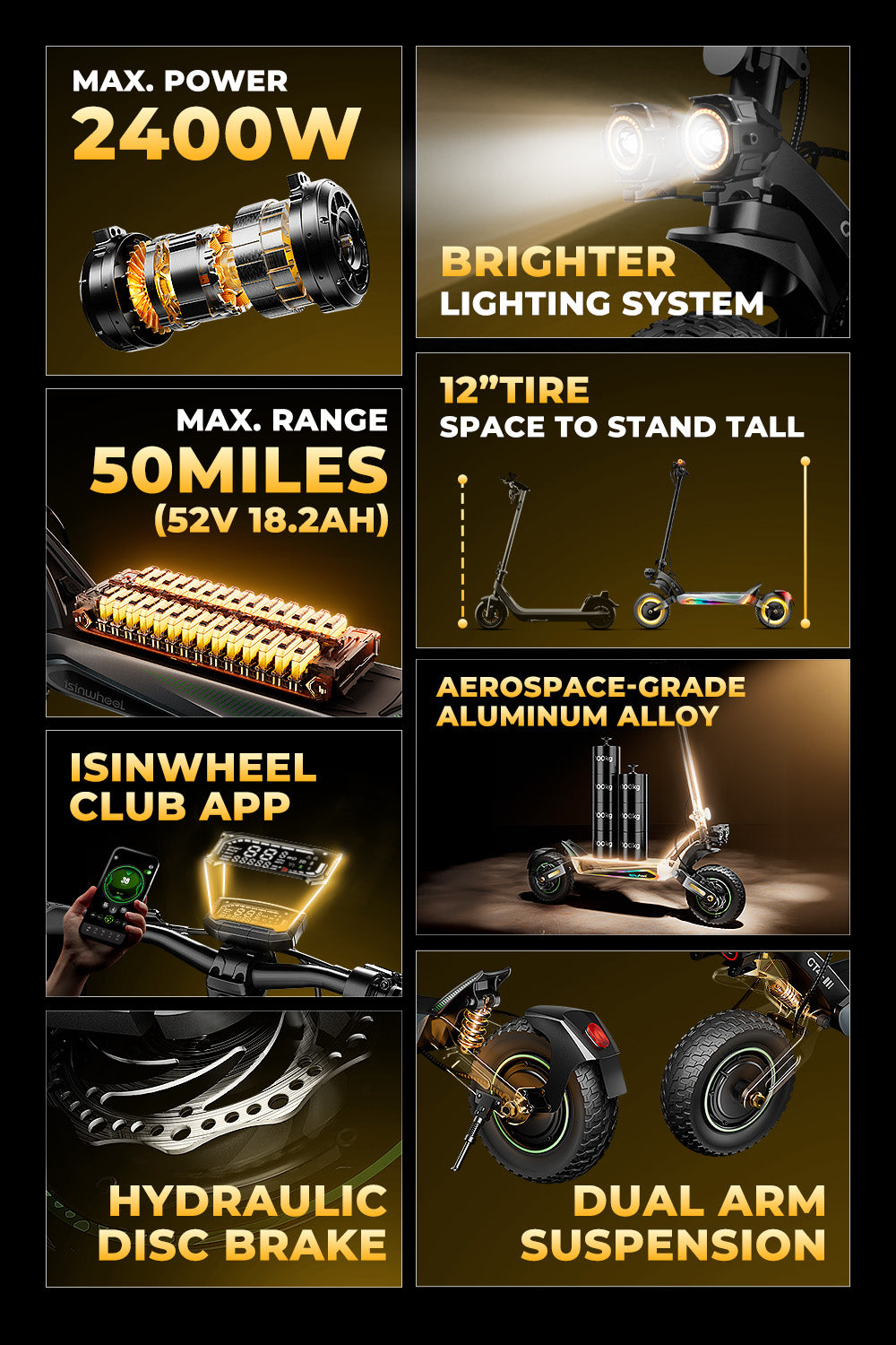 isinwheel® GT4 High-Performance 2400W Dual Motor Electric Scooter