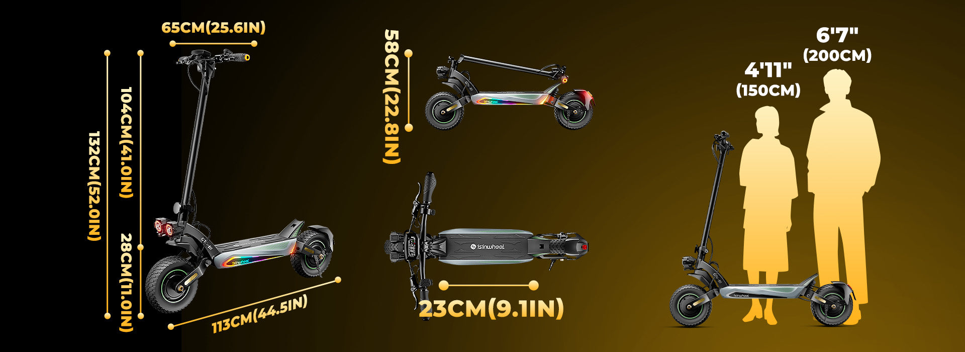 With a 52.0-inch height and an 8.9-inch wide deck, it’s built to offer a comfortable and spacious ride for taller and larger riders.
