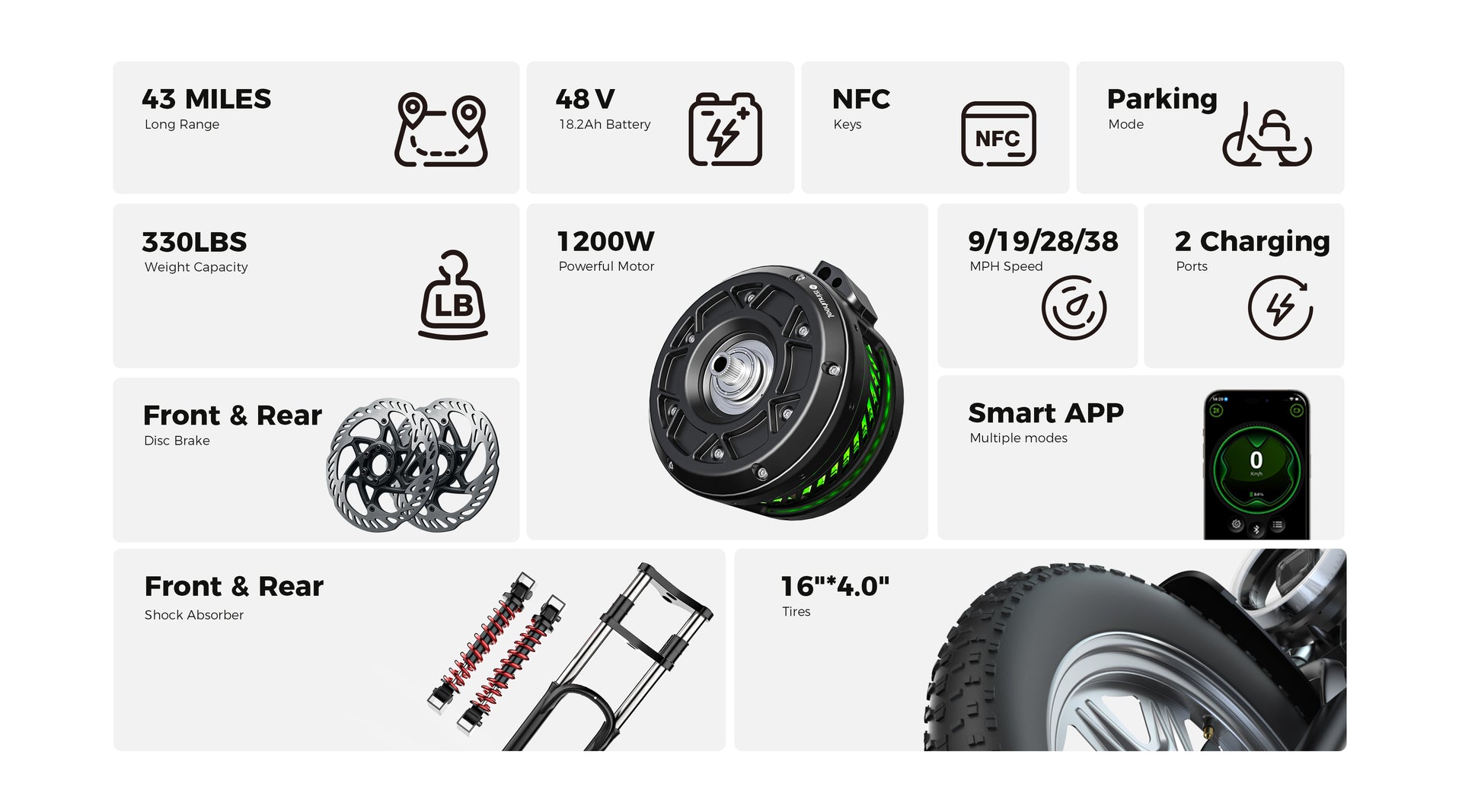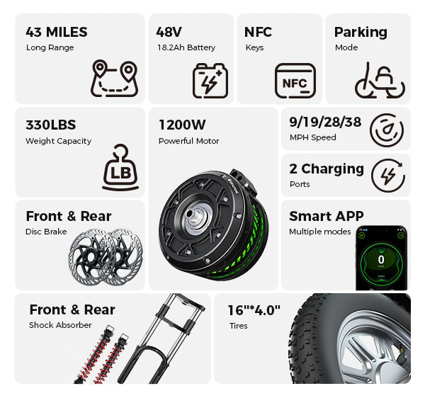 Built with an integrated forged aluminum frame, hydraulic disc brakes, oil-spring suspension, and 12-inch tires, the GT4 blends elegance with exceptional ride comfort.