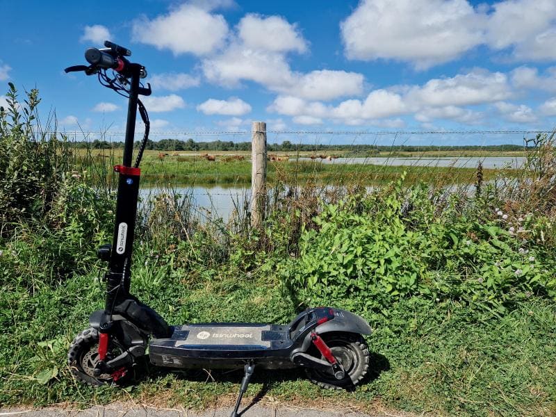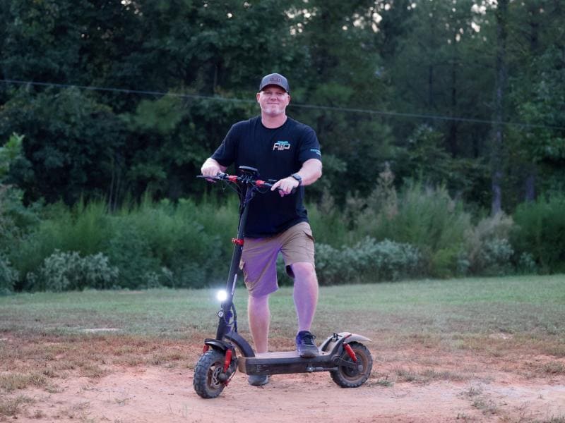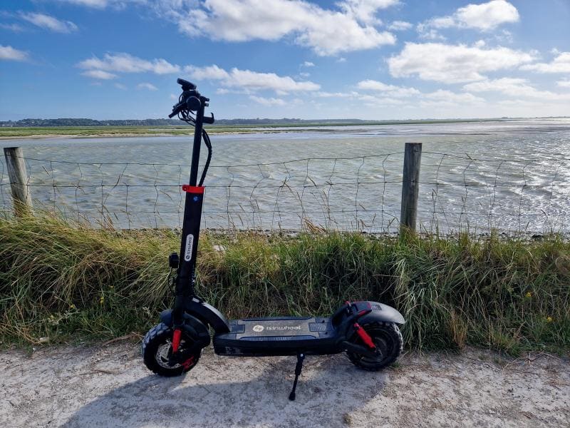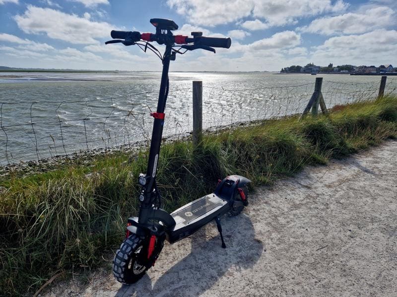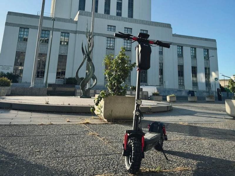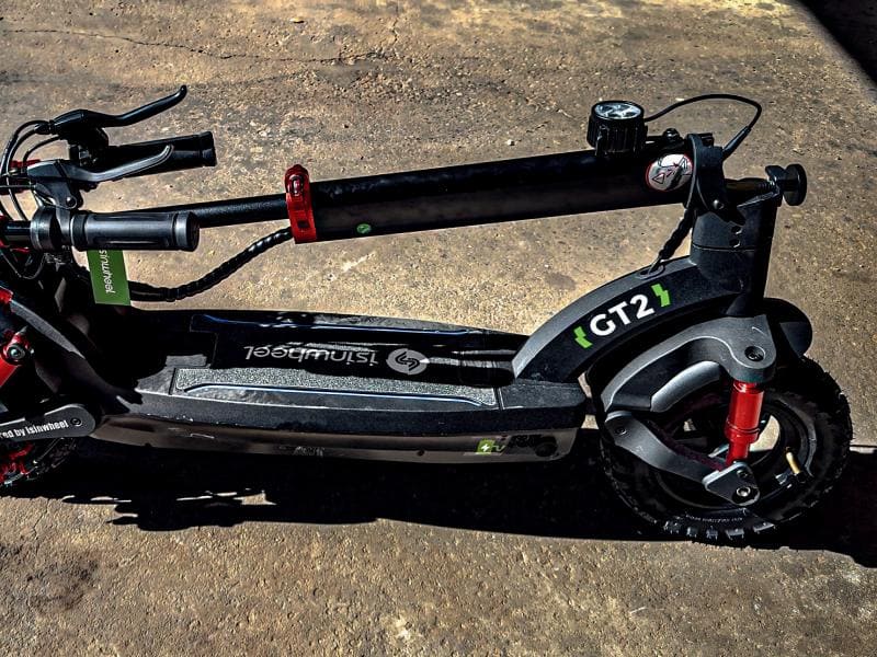 The GT2 electric scooter for adults featuring a lightweight magnesium alloy frame aimed at easy portability and storage. This frame design not only enhances the overall riding experience but also improves acceleration and handling performance, making the ride faster and more agile.